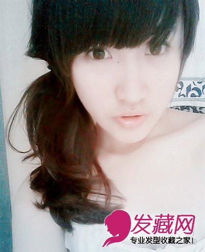 如果圆脸美眉想扎马尾,想这样把头发收拢一侧,歪歪扎起来最合适,配上长长刘海,小颜修脸又青春无敌,非常活泼的女生发型。