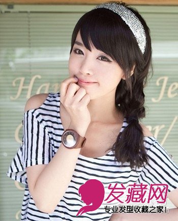 也可尝试将蛋卷头绑上复古的辫子造型,搭配亮片的大号发饰,显得可爱又时尚。