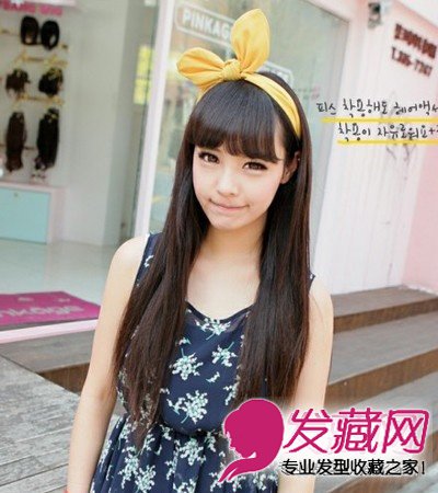 小编点评:齐刘海长直发发型+黑褐色染发,内卷式的遮眉齐刘海,显得眼睛无限放大,勾在耳后的头发,脸型马上变V字,小巧玲珑。