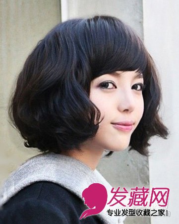 小编点评:蓬松BOBO头+棕色染发,自然的卷度将发型的圆润感和光泽感展露无遗,漂亮的染发升级可爱度,打造巴掌小脸