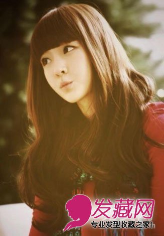 齐刘海的长卷发,很适合圆脸的女生,也非常的适合冬季呢,暖暖的阳光照射下来,清新可爱。