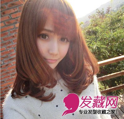 齐刘海蓬松中长卷发 ,能修饰不完美额头以及过宽脸颊,圆脸打造成瓜子脸。