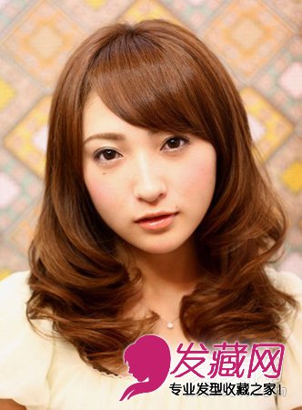 小编点评:斜分的刘海可以很好地修饰你的脸型,打造精致的瓜子脸,及肩的中长发烫上螺旋式的大卷,显得非常精致甜美,栗色的发色更是时尚潮流。