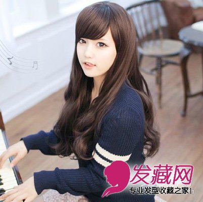 小编点评:斜刘海的长卷发,不论是圆脸还是大脸的女生都可以轻松搞定