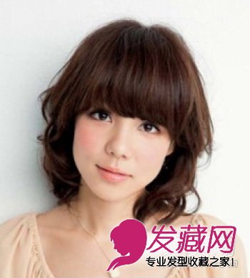 加厚齐刘海起到很好的修颜效果,搭配富有层次感的中卷烫发,带这淡淡的甜美与女人味