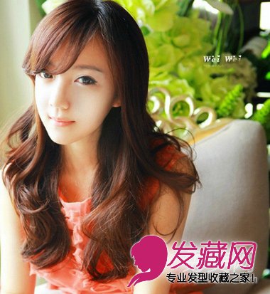 青春甜美的披肩大卷发,打造这款发型美丽的关键在刘海的整齐和秀发的颜色,单纯青春的少女气质,活泼俏皮
