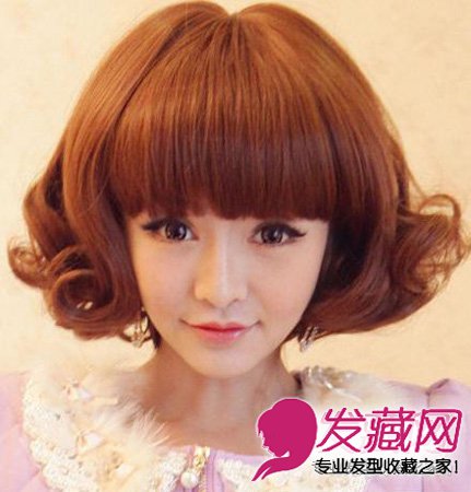 带点绵阳卷的卷发发型,整个卷度从刘海两侧开始,发丝立刻蓬松起来,卷翘的弧度带着俏丽的味道,齐齐的厚刘海微微的内扣,有种可爱公主范。