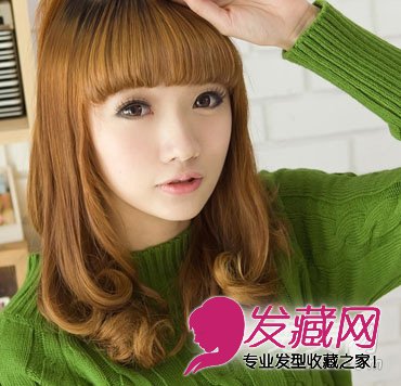 精灵灵的眼睛十分动人,金亚麻色的染发,非常的时尚潮流,内扣弧度的中长发梨花头,加厚厚的齐刘海搭配可爱减龄。