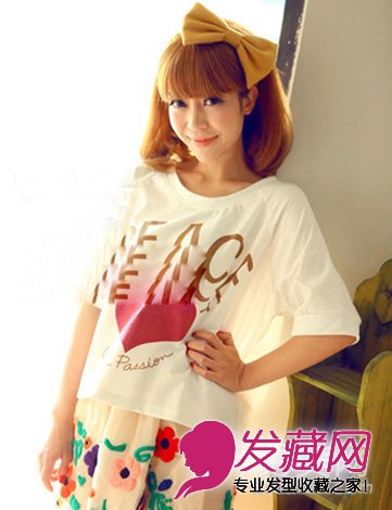 超大的蝴蝶结发箍,呈现个性可爱味道,减龄的齐刘海梨花头,搭配金棕色染发颜色既能凸显白皙皮肤又能增添潮流韵味。