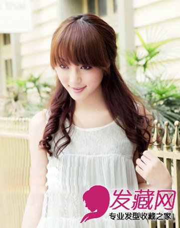 喜欢韩式公主头的清新淑女,半扎的发型,简洁大方,摆放在胸前的卷发,提升女人味,齐刘海与卷度的巧妙结合,给人视觉上的精致感受。