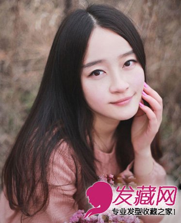 说到瘦脸发型,其实首先想到的就是适合圆脸的中分,两侧的长发起到很好的素颜效果,披肩的长发发型,深色造型,没有任何的修饰,尽显清新OL气质。