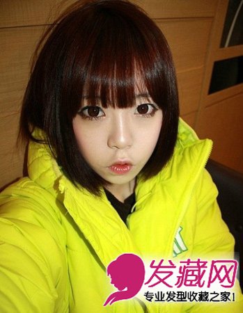在短发发型中,也是有许多的短发是很适合圆脸的女生的。这一款中短款的齐刘海波波头发型,就可以很好的修颜瘦脸。想换短发的圆脸MM们,快来试试吧!
