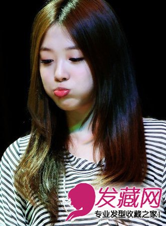 中分的长直发发型,也是一款颇适合圆脸的发型呢!嘟嘟的小嘴加上卖萌的表情非常的可爱。倒V字型的中分设计,让你的脸看起来非常的小。