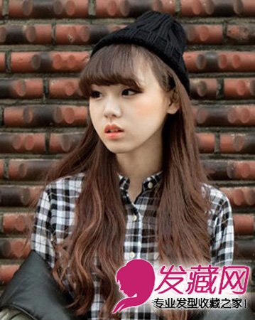 将厚厚的齐刘海烫上内扣的大卷,甜美可爱中更多一丝俏皮活泼,深咖色的长发十分优雅迷人,烫上简单的大卷更是吸人眼球。