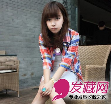 蓬松的齐刘海,内扣的中长发。是一款非常适合圆脸的中长发发型,拥有小清新气质的同时还可以瘦脸哦!