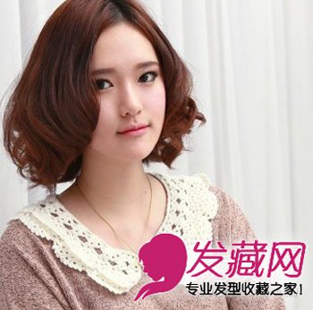 这款中分刘海的深棕色短卷发修颜效果很赞,内扣式的层次发尾烫发和蓬松的感觉更显脸小。