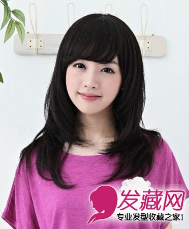 斜刘海的中长发发型,是一款非常适合圆脸女生的发型,斜刘海可以在修饰额头的同时,也不会让脸显的更圆,中长发的内扣层次感发尾可以很好的修饰圆嘟嘟的下巴。
