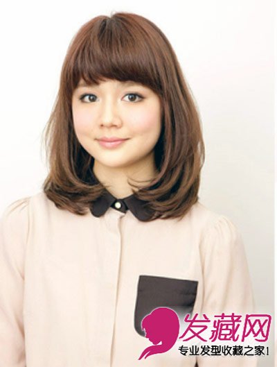 脸上有点肉肉的MM不妨试试这款梨花头。齐刘海有效的修饰了脸型,内扣发尾衬出立体的五官,脸上带点肉肉的感觉很可爱。
