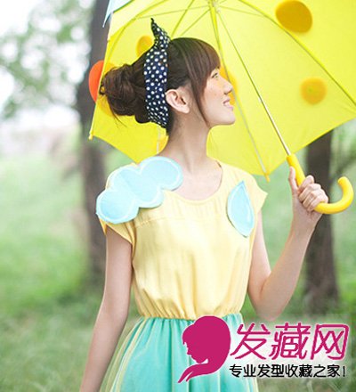 夏季清爽的花苞头发型,个性的丝带装扮给人时尚的感觉,加上有最IN的齐刘海搭配,你又怎么能不爱这款韩式发型呢?