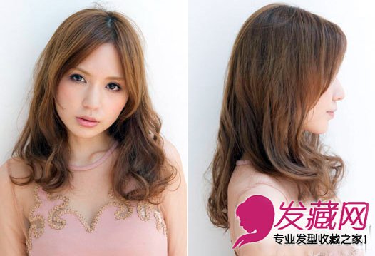 小编点评:圆脸MM也可以性感魅惑。侧分刘海沿着脸颊内扣,长及脸颊的发束自然的遮掩脸颊的肥肉,小脸立刻呈现,栗色卷发华丽慵懒,配上妩媚的大眼妆,十分魅惑。