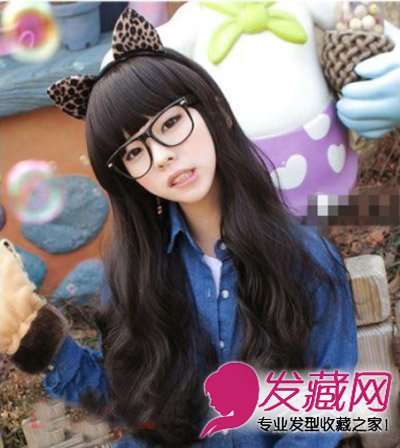 这款非主流女生长卷发,时尚整齐的齐刘海搭配蓬松的卷发设计,将圆脸显得十分的可爱美丽。