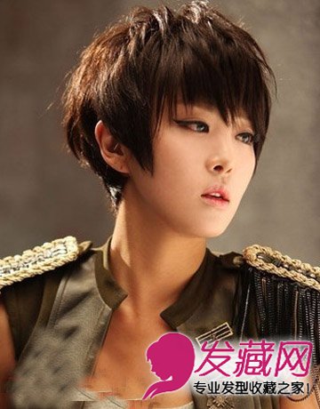 帅气的短发烫发发型,一双忧郁的眼神,干净美丽的脸庞,体现出女汉子也有柔弱的 一面,蓬蓬的碎发时尚大方。