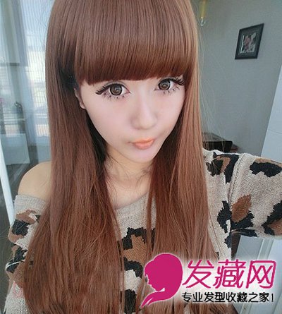 这款厚重的齐刘海长卷发,散发着甜美的气息。深棕色的染发发色让整款发型焕然一新。