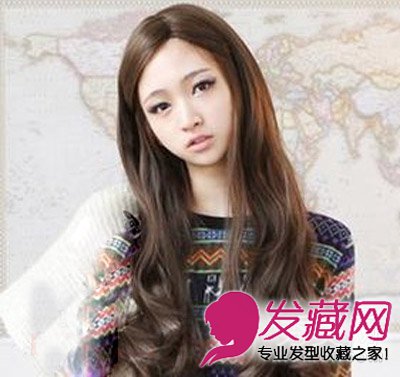 这款中分发型流露出可爱的少女气息,简约甜美。棕色系发色加上蓬松的长卷发,十分优美恬静,宛如邻家小女孩。