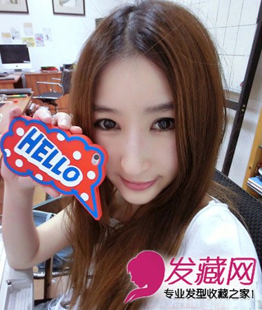中分发型是修颜的必备法宝,这款长直发发型,中分的刘海搭配时尚的染发,瞬间凸显出了女生甜美的气质。