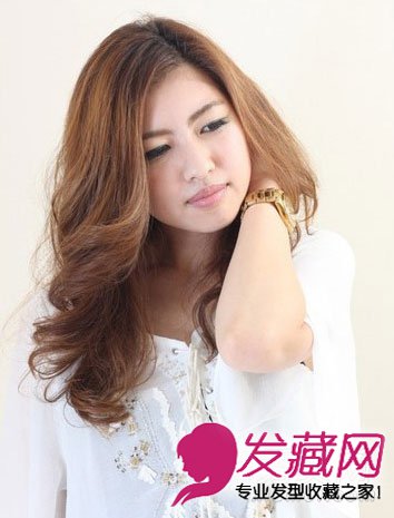 这款圆脸烫发发型图片适合发量偏多的MM,蓬松的外卷卷发华丽吸睛,自然的将圆脸包裹起来。