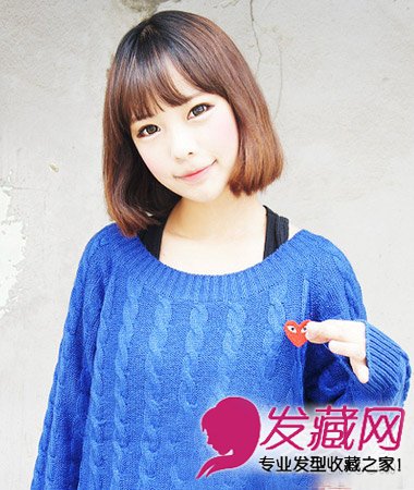 短发挑染的棕色系发色映衬肤色,圆润的弧度发丝,齐刘海短发将脸颊包住,修饰出圆润可爱的脸型。