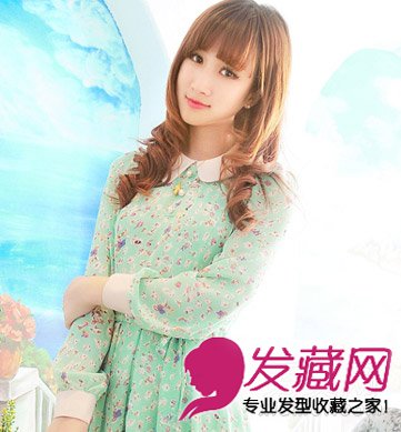 一款时尚的螺旋烫卷发发型,发丝烫出华丽的弧度感,齐刘海的发型衬托出脸型的精致小巧,尽显摩登气场,配上一件清新的裙子,非常的甜美有气质。