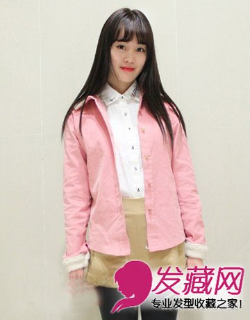 纯美的日系直发女生发型,标准的轻薄刘海的发型设计,直发发型披在肩头,随性简单,自然的黑色发丝的垂顺直发时尚清新,很清新的感觉。