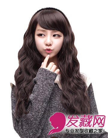 这款长卷发发型,自然的黑色发色给人一种不做作随意的感觉。斜分的齐刘海加上蓬松的大波浪长卷发发丝,不但完美修颜也十分减龄。