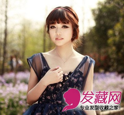 齐刘海的韩式低盘发设计对于圆脸的女生来说最衬脸的,在额上有着蓬松的质感的刘海和在脸颊庞有着微微向后拉的柔顺秀发,简单的盘在身后的秀发偶尔还冒出一点碎碎的发丝,给圆脸衬托出小女生的甜美感觉。中分蓬松低盘发发型