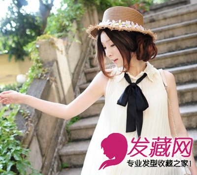 彰显田园风情的设计,当然要给人很柔和的闲散居家气质。首先是刘海,将刘海设计成一点点的扣脸设计的及肩梨花样式本就显出很衬甜美的感觉,在耳后一侧低低的挽起的盘发更添效果。