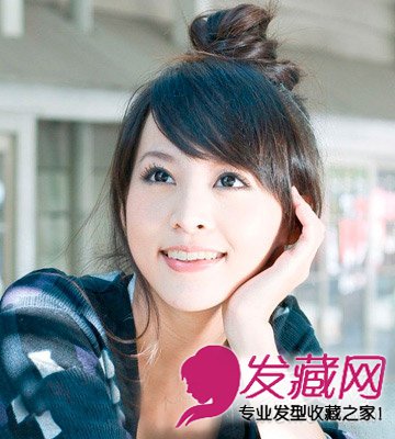厚重的斜刘海乖巧的滑过额头,打造出精致迷人的小脸脸型,高高耸起的丸子头清新优雅,甜美吸晴。