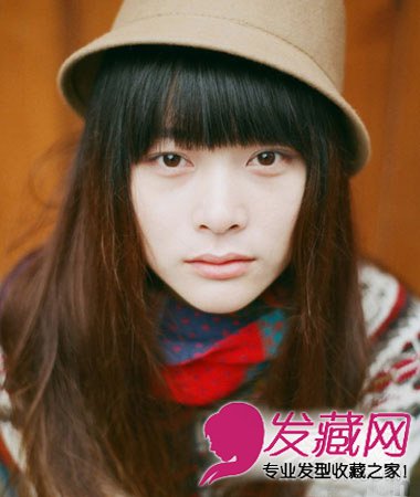 这样的长直发带给人甜美感觉,前面剪齐刘海,倍添甜美气息,经过染色的发丝,更是充满了时尚感。