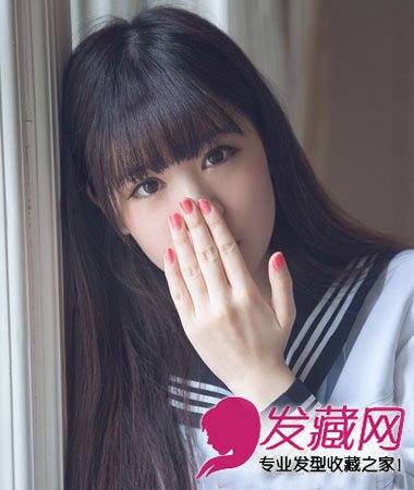 韩式长直发发型,垂坠直发都可以和齐刘海完美搭配,打造出不一样的甜美效果将女生清纯迷人的气质展现的淋漓尽致,非常的甜美自然。