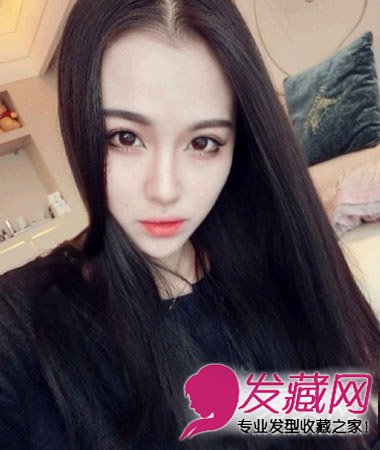 韩系偏分长直发打造出来的淑女范儿,长斜刘海修颜,这款黑长直也是很多爱美的MM喜爱的,非常衬肤色。