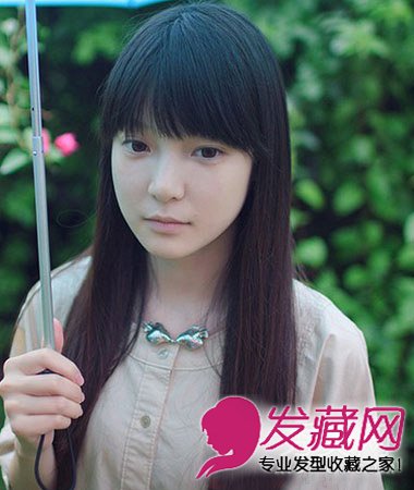 修颜的顺直长发发型,两颊自然垂落的发丝坠感十足,很适合圆脸妹纸拿来修颜,将脸颊藏起,修饰出甜美的脸型。