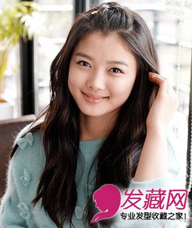 极具韩流气息的一款长发烫发,韩式的微卷烫发效果自然清新,很适合少女们的烫发,露额发型清新,时尚可爱。