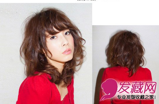 及眉刘海遮盖额头,与卷发鬓角修出可爱小脸。蓬松发型散发迷人性感魅力。