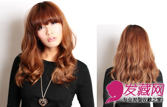 内扣齐刘海是瘦脸利器,1秒钟就能让你圆脸变小脸,棕色头发显青春活力。