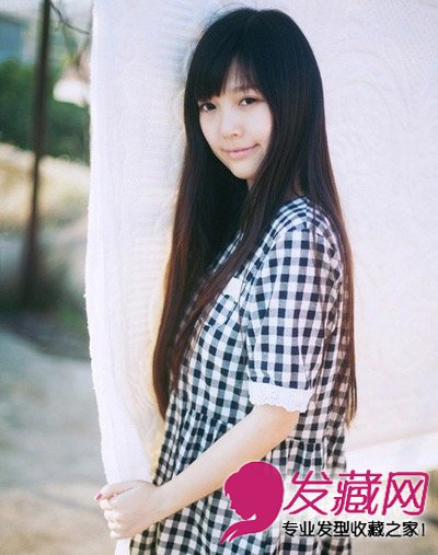 十分清纯可人的妹子呀,超长披肩的直发发型,营造出几分斯文乖巧女生感觉,同样是直发的齐刘海,满溢出清新迷人。