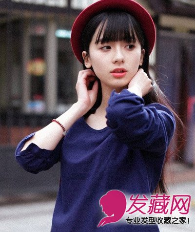 全部直发的往肩后披散,自然又显得随性感,清晰可见的几缕齐刘海发丝,修饰完美脸型,搭配红色帽子,甜美时尚韩系范!