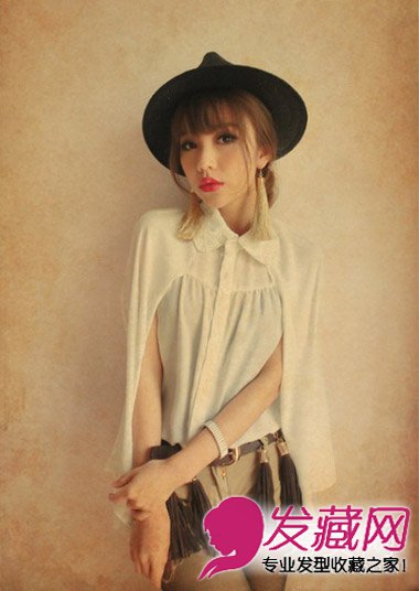 这款个性独特的女生碎刘海扎发发型是今年很流行的一款女生扎发发型,更显小女生的妩媚与动人,黄色的染发发色更好的映衬白皙的肤色,一款时尚的女士帽给这款发型注入新的活力。