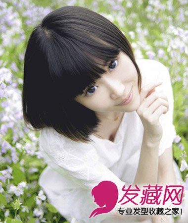 小清新范儿的柔美女生发型,乌黑发丝自然莹亮,打理出层次感更显清新气质,齐刘海短发修颜更显脸型精致。
