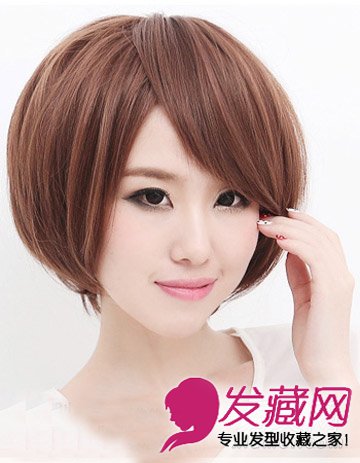 比较适合OL一族的波波头短发型,知性的斜刘海短发,清新的三七分弧度恰好挡住脸颊,很显脸小,略微烫蓬的发束时尚甜美造型感十足。