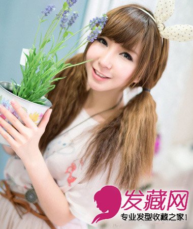 适合小清新范儿MM的一款简单双马尾扎发,蓬松感发丝扎双马尾,很适合春季里MM们的出行发型,简单清爽好打理。